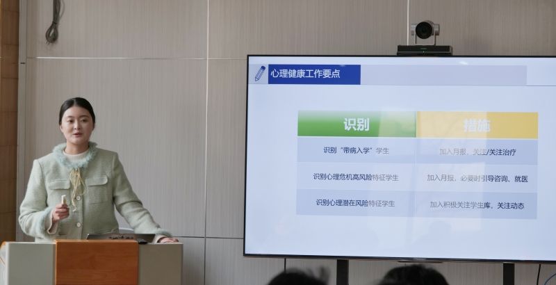 李可心作了题为《学生心理危机识别及谈心谈话技巧》的专题培训,从心理工作要点、心理问题学生谈心谈话技巧、心理危机识别干预三个角度,介绍了做好大学生心理工作的技巧方法,并结合具体案例,向老师们介绍了如何做好心理问题学生谈心谈话工作。