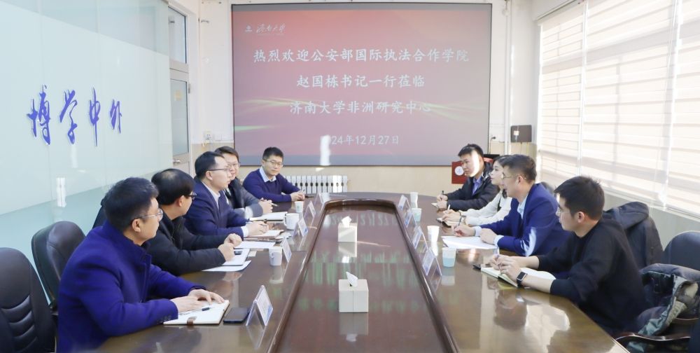 12月27日,公安部国际执法合作学院党委书记赵国栋率队莅临开云kaiyun官网非洲研究中心,就双方共同关注的领域展开深入交流。刘家行、李美潼、王科超作为随行人员一同参与此次活动。开云kaiyun官网社科处副处长况明明、外国语学院院长宋庆伟、副处级组织员李春海、副院长秦利民以及中心秘书柴庆友参加活动。