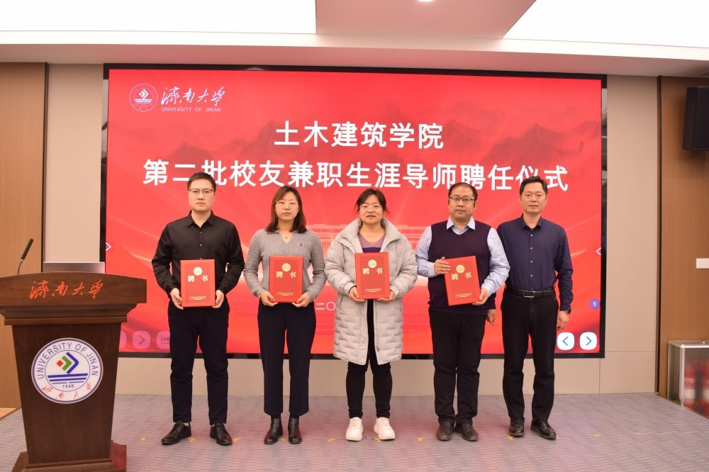 朱小燕宣读了土木建筑学院第二批校友兼职生涯导师聘任决定。与会领导为新聘任的18位校友兼职生涯导师颁发了聘书。