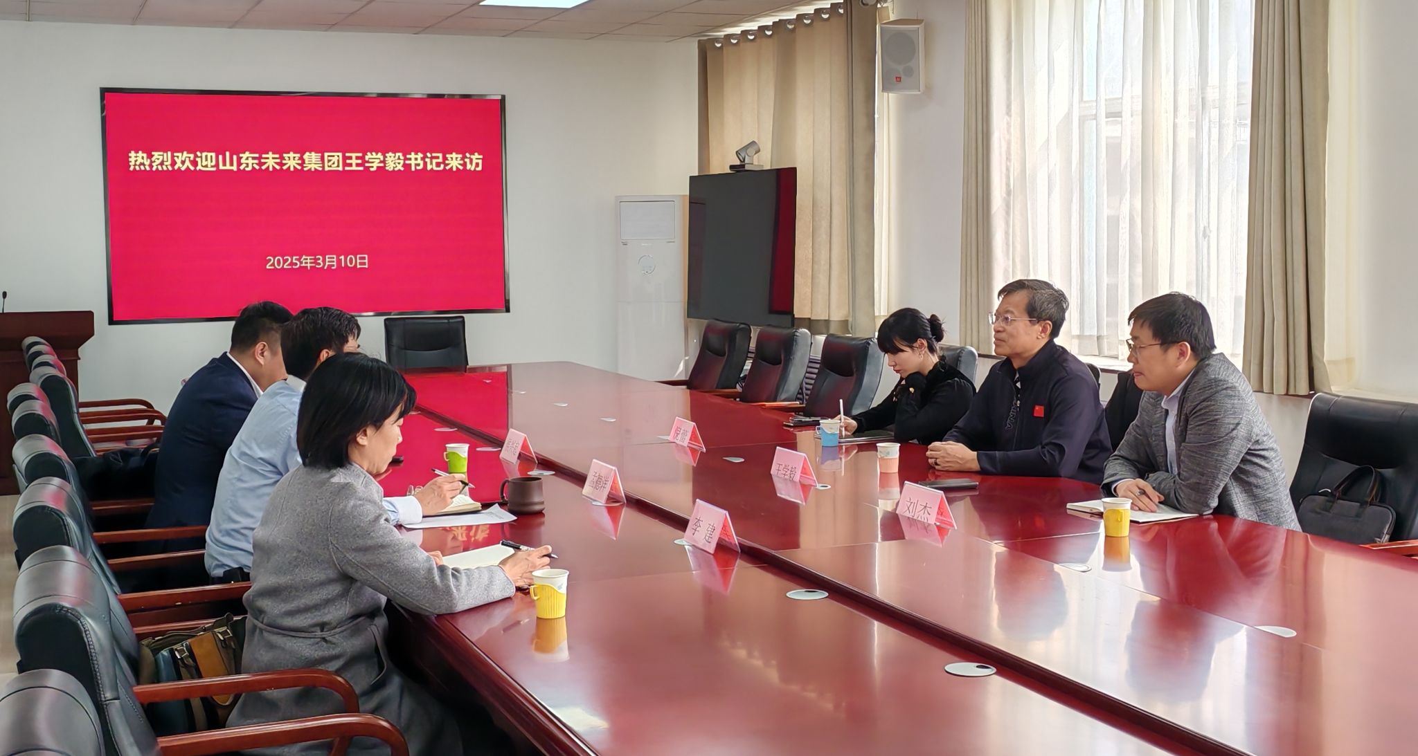 3月10日,山东未来集团党组织书记、山东未来先导基金董事长、未来常青公司董事长王学毅一行到文化和旅游学院座谈交流。学院党委书记孟德洋、旅游系主任李建、酒店管理系主任侯兴起参加会议。