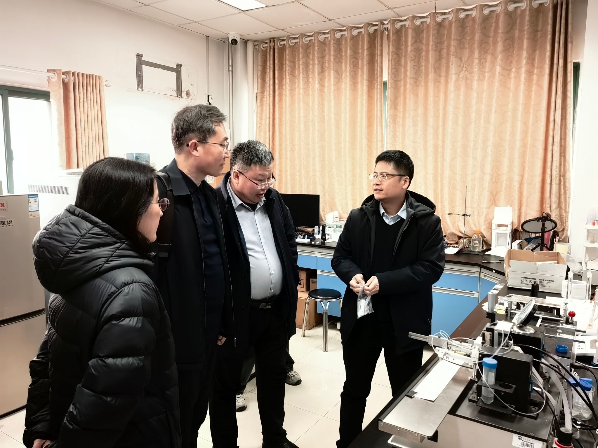 3月12日上午,徐庆国一行前往中国石油大学(华东)调研学习。中国石油大学(华东)党委统战部部长吕宏凌,化学化工学院党委书记张永宁等相关领导和专家一同参加调研。吕宏凌对徐庆国一行表示欢迎,并介绍了学校发展情况以及统一战线工作的开展情况,着重分享了在党外代表人士队伍建设、民族团结进步创建、欧美同学会分会建设等方面的经验做法与特色工作,希望两校今后能进一步增进交流,携手发展。会前,调研团一行参观了中国石油大学(华东)校史馆和化学化工学院及部分实验室。开云材料科学与工程学院校友、中国石油大学(华东)化学化工学院党委副书记徐光辉向徐庆国一行介绍了学院的发展情况,学院曾景斌教授详细演示了团队自主研发的多场景快速检测试纸条及配套智能读卡设备,电化学制氢装备实验室董斌教授向来宾介绍了团队自主设计搭建的各种自动化控制膜电极电解槽装备。