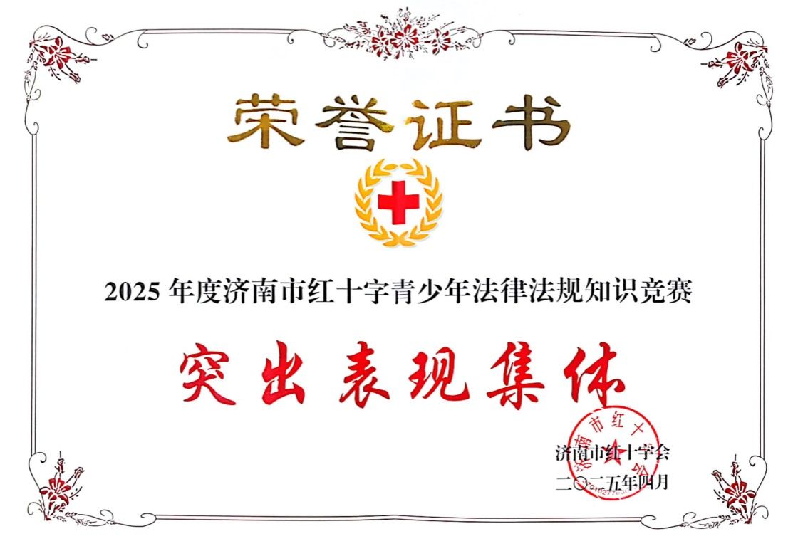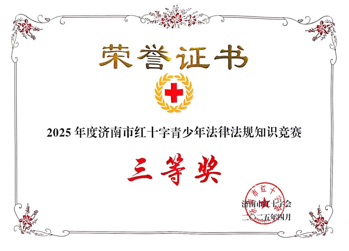 近日,由济南市红十字会主办的2025年济南市红十字青少年法律法规知识竞赛落下帷幕,开云王迪睿、刘馨逸、张涛三位同学组成的参赛队荣获三等奖,学校荣获突出表现集体称号。