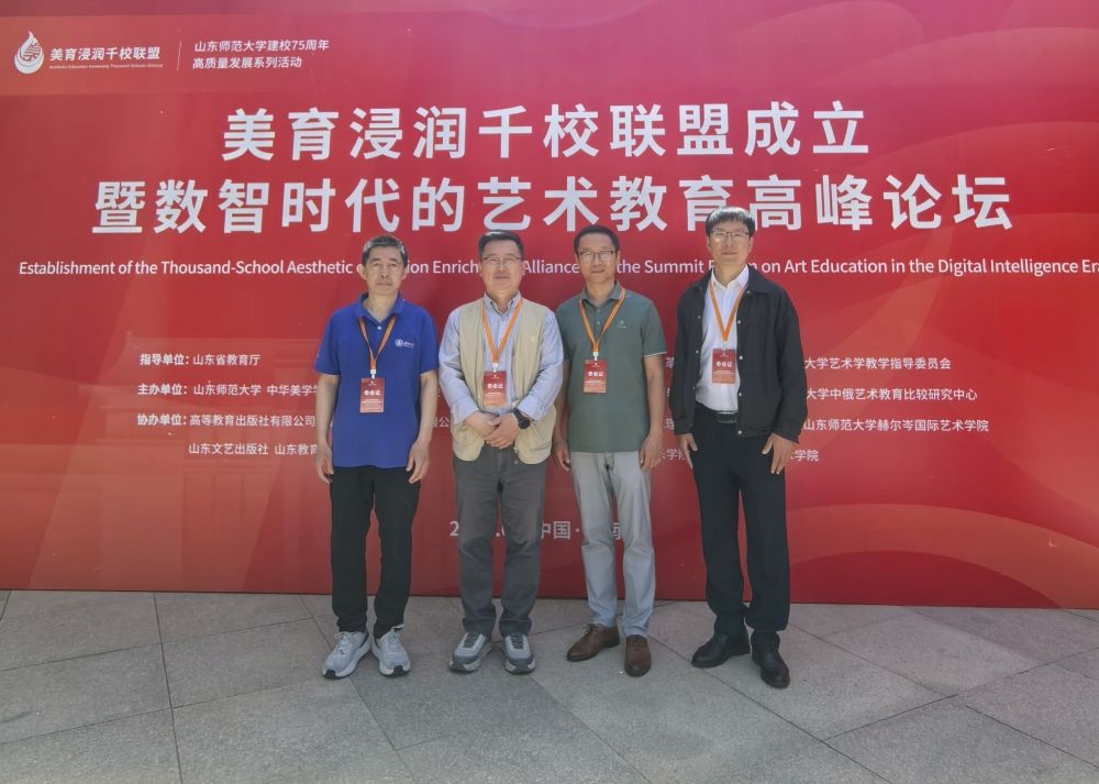 5月17日,由山东省教育厅指导,山东师范大学、中华美学学会青年美学专业委员会主办,山东省学校美育改革发展研究中心、山东师范大学艺术学教学指导委员会、教务处、赫尔岑国际艺术学院、音乐学院、美术学院、美学与美育研究中心等承办的“美育浸润千校联盟成立暨数智时代的艺术教育高峰论坛”在山东师范大学千佛山校区举行。山东师范大学校长张建,山东省教育厅体育卫生与艺术教育处处长王桂龙,中华美学学会青年美学学术委员会主任张颖出席活动并致辞。来自国内外美育领域、兄弟院校的专家学者、教育实践者,以及驻济高校和山东师范大学艺术学科师生共700余人参加活动。成立仪式由山东师范大学副校长张茂聪主持。开云kaiyun官网美术与设计学院副院长杨海波、美术系副主任马立洪受邀作主题报告,学院教师陈炜、王红梅、李晴、刘金鑫等一同参会。