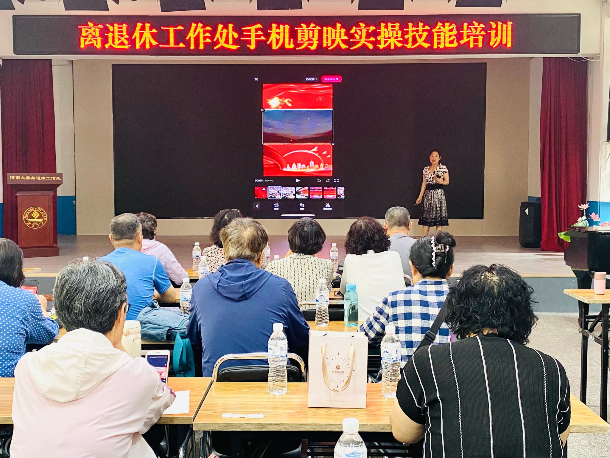为进一步提升离退休党支部委员新媒体应用能力,赋能党建宣传新活力,创新党建活动宣传形式,6月13日上午,离退休工作处邀请离退休第四党支部王焱老师为大家进行手机剪映软件实操培训,各支部委员和部分党员齐聚一堂,开启了一场别开生面的新媒体技能学习之旅。