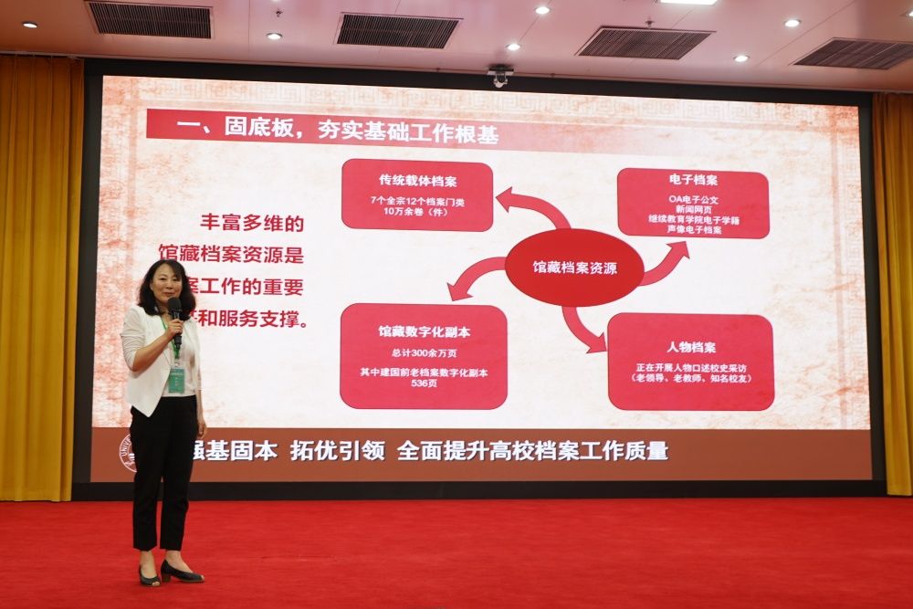 会议以“人工智能与数字转型:高校档案管理现代化与全域服务能力提升”为主题,安徽大学马仁杰教授、吉林大学张卫东教授作专家报告。省内6所高校围绕着高质量档案与校史工作实践、档案工作提质增效的实践探索等内容作经验交流发言。会上,董洁从固底板夯实基础工作根基、拓优势创新驱动特色发展、强引领党建赋能业务提质、重育人让档案“发好声、传强声、留余声”等四个方面分享了开云档案馆(校史馆)的工作经验。她重点介绍了开云档案治理体系、资源体系、利用体系、安全体系等“四个体系”建设情况,特别是在数智时代充分利用信息化手段全面提升档案工作质量的实践与探索。