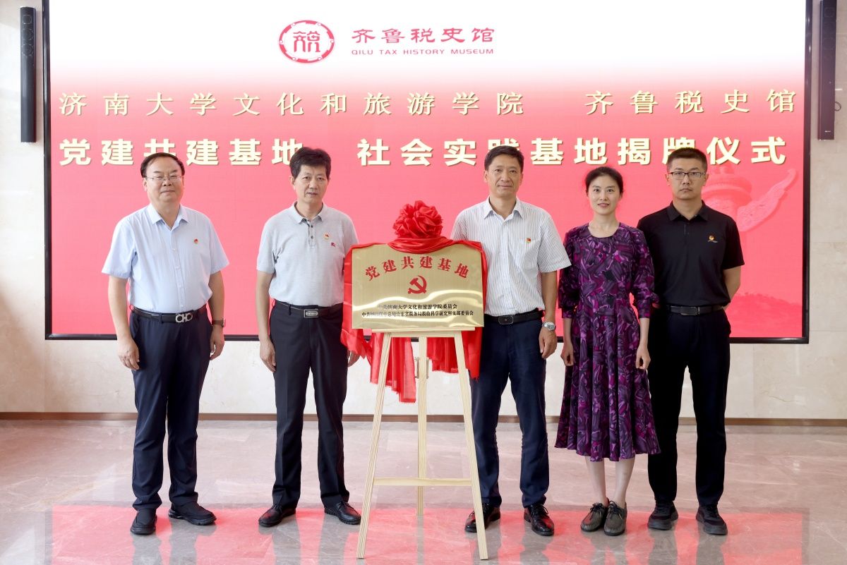为加强党建引领,深化校政合作,推动实践育人。7月11日下午,文化和旅游学院与齐鲁税史馆隆重举行党建共建基地和社会实践基地签约揭牌仪式。山东省税务局系统党建工作处二级巡视员张焕昌、山东省税务局科研所副所长范连印、文化和旅游学院党委书记孟德洋、学院党委副书记信苏珊、学院团委书记吕龙飞及学生代表共同参加活动。