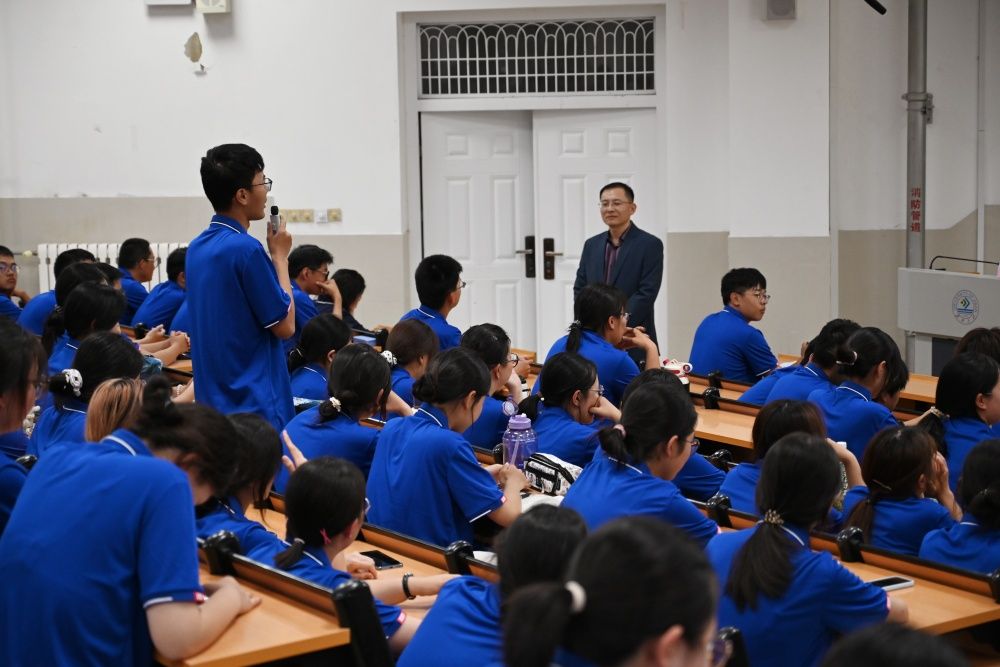 课堂气氛热烈,同学们踊跃发言,大家结合自身思考,分享了对大学价值、个人成长路径的理解,在思想碰撞中进一步明确了努力方向。王勇寄语全体新生,期待大家合理规划大学生涯,努力学习,成为理想中的自己,为中华民族伟大复兴贡献青春力量,实现自我价值,不忘初心,追光而行!