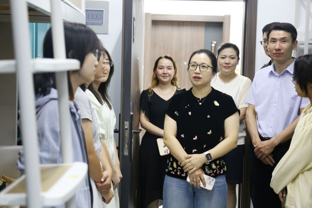 夜色渐深,关怀更暖。迎新报到当晚,学院党委书记李春慧、党委副书记李涛与辅导员一行深入新生宿舍,与大家亲切交流,细致询问住宿、饮食等情况,倾听入学感受,并围绕课程学习、社团活动与校园服务等问题一一耐心解答。走访中,老师们还介绍了学院的学科特色、培养目标和校园安全须知,鼓励新生早日适应环境、明确学业目标。