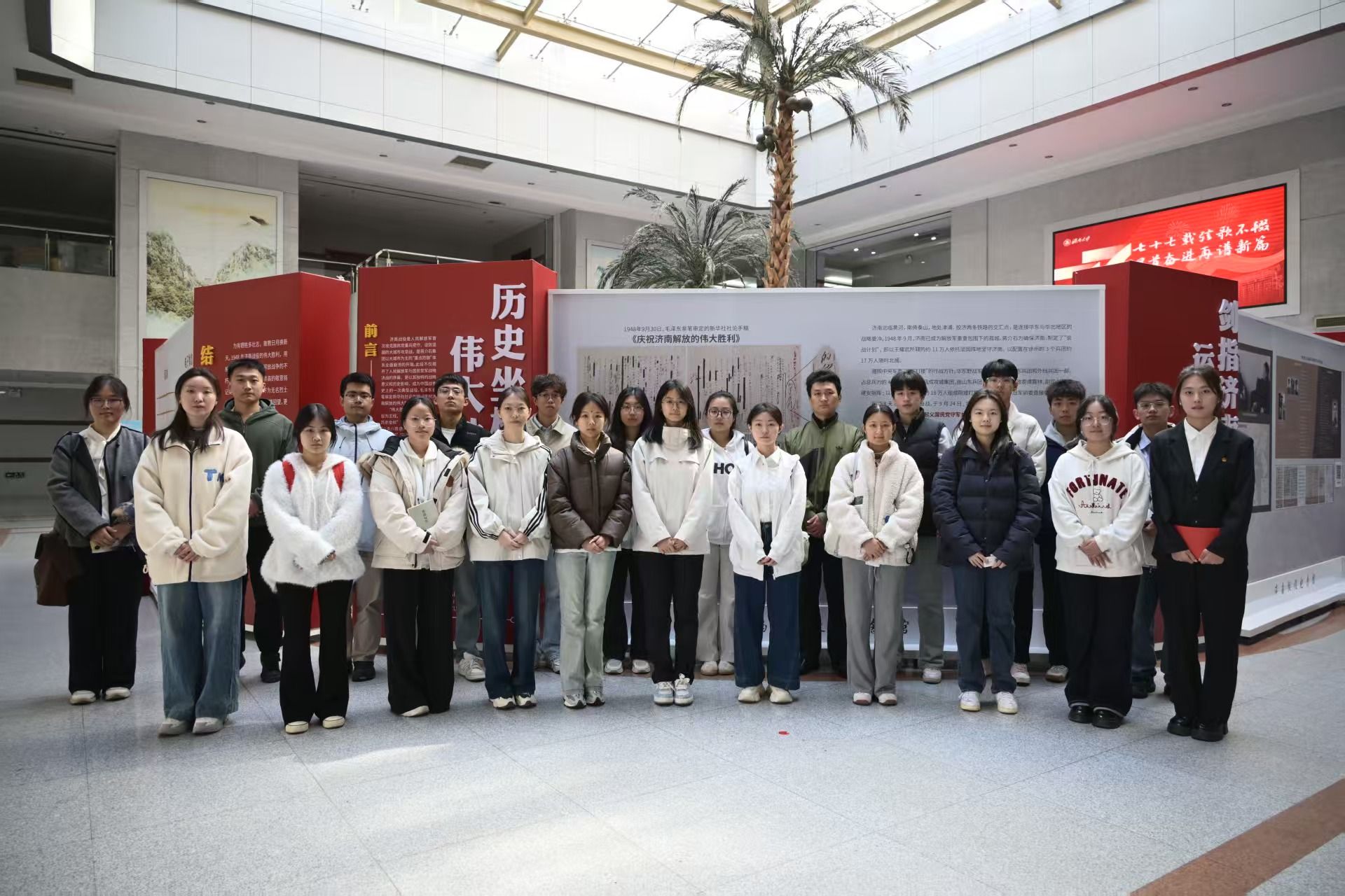 高擎“精神火炬”,上好“弘扬抗战精神”课。为深入传承红色基因、厚植爱国情怀,各学院以纪念抗战胜利80周年为契机,大力弘扬抗战精神。物理科学与技术学院通过观影、故事会等活动,带领青年学子回顾一代代团员青年坚定不移听党话、跟党走的鲜明事迹;音乐学院以抗战精神为主题,系统开展沉浸式学习;教育与心理科学学院运用红色典籍案例教学,激发责任担当;学校“青马工程”第十五期培训班参加“英雄山薪火”宣讲团“五进”活动暨“伟大胜利”济南战役史实展巡展,探寻历史根脉,传承红色基因。“观今宜鉴古,无古不成今”,各基层团支部引导青年学生鉴往知来,在把握历史规律、汲取历史经验中锚定前行航向。