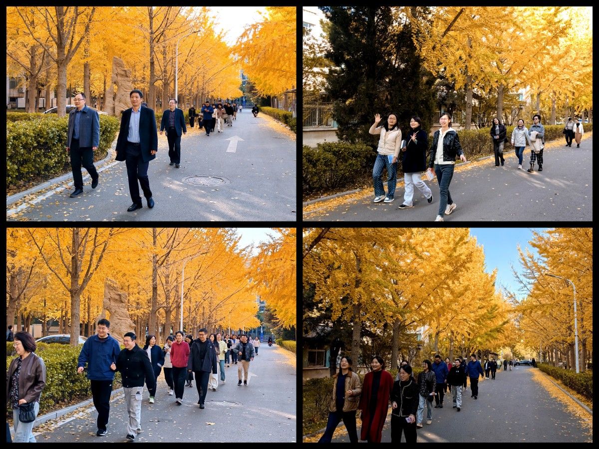 参与人员结伴漫步于校园,沿健身步道阔步前行,有的与同事并肩而行,步伐轻快有序,畅谈工作中的心得与生活里的趣事;有的放慢脚步欣赏沿途景致,用手机记录秋日美景;遇到体力稍弱的同事,大家主动放慢节奏陪伴同行,相互鼓劲加油,浓浓的团队情谊在行进中不断升温,欢声笑语回荡在校园,大家在轻松愉悦的氛围中感受运动带来的活力与松弛。