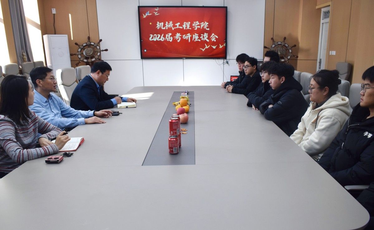 11月19日,机械工程学院在机械楼A324会议室召开2026届考研学子座谈会。学院党委书记程涛、学院党委副书记孙成政和考研学子代表参加会议,座谈会由辅导员田方圆主持。