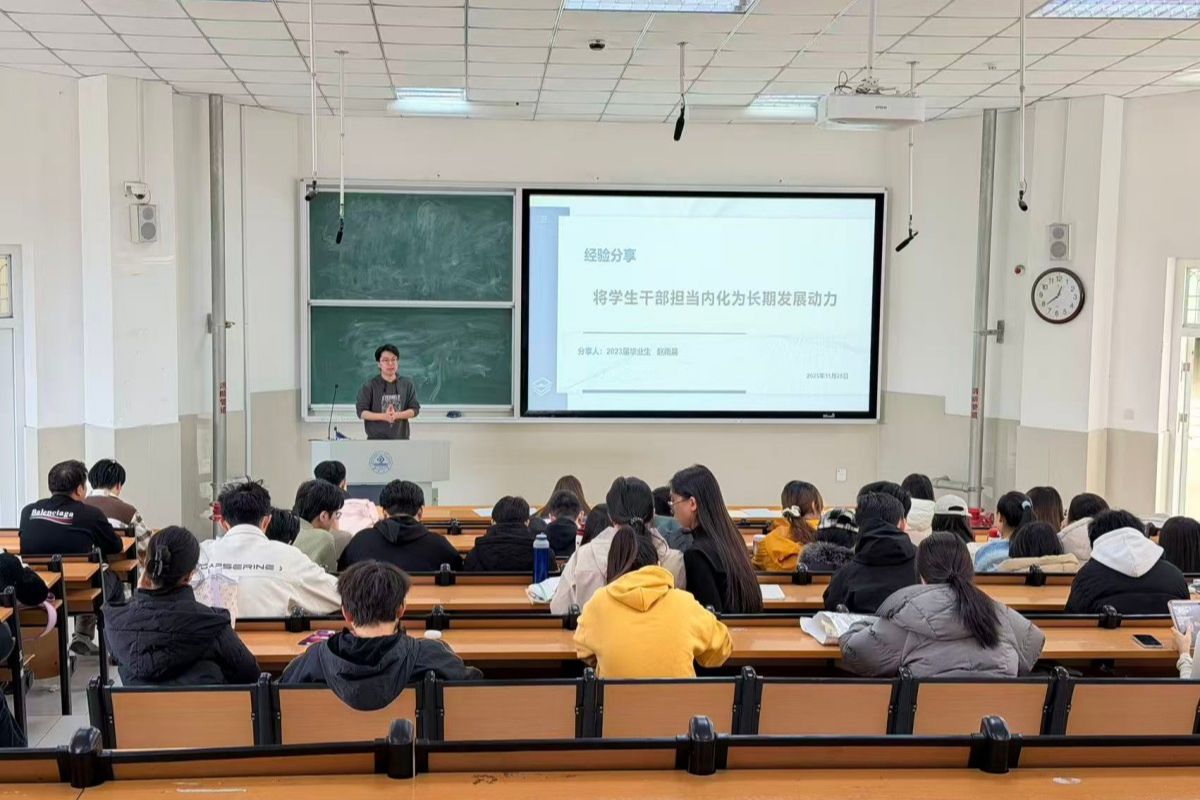 11月26日,2023届优秀毕业生赵雨晨围绕“将学生干部担当内化为长期发展动力”展开分享,引导学员们深刻理解学生干部经历的价值内核,把服务同学、统筹协调、攻坚克难的担当意识,转化为未来学业深造、职业发展中主动作为的能力,成为支撑个人持续进步的内在驱动力。第十四期“青马工程”学员代表王旭红、苏悦围绕担当、服务、成长等主题分享经验,为学员们提供了宝贵的经验借鉴与方法指导,激励学员们坚定理想信念、敢于担当作为,在崇德向善、自警自省上立标杆,在勤奋学习、苦练本领上求实效,在脚踏实地、真抓实干上见真章,充分发挥模范带头作用,以青春之力扛起使命重任,用实干担当书写成长答卷。