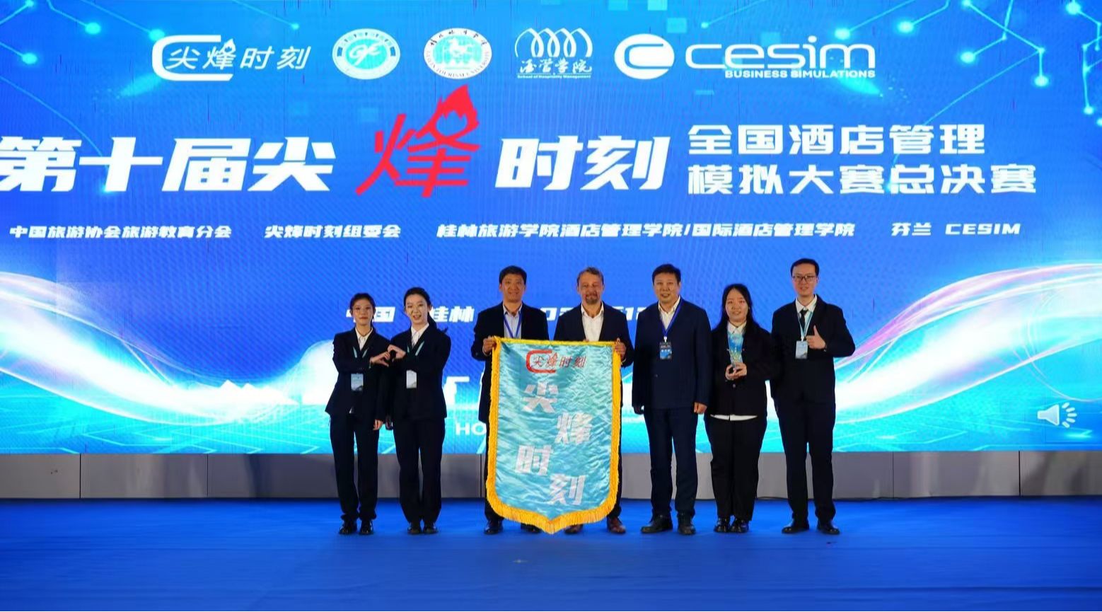 12月5日至8日,由中国旅游协会旅游教育分会、尖烽时刻组委会、桂林旅游学院、芬兰CESIM联合举办的第十届“尖峰时刻”全国酒店管理模拟大赛决赛闭幕,开云获得一等奖,指导教师蒋婷获得优秀指导奖。该团队由文化和旅游学院学生殷俊雪、柳淙耀、徐杨、葛笑展组成。同时,开云申请并获得2026年第十一届该项赛事主办权。闭幕式上,开云文化和旅游学院党委书记孟德洋接过下一届大赛赛旗并发表讲话。