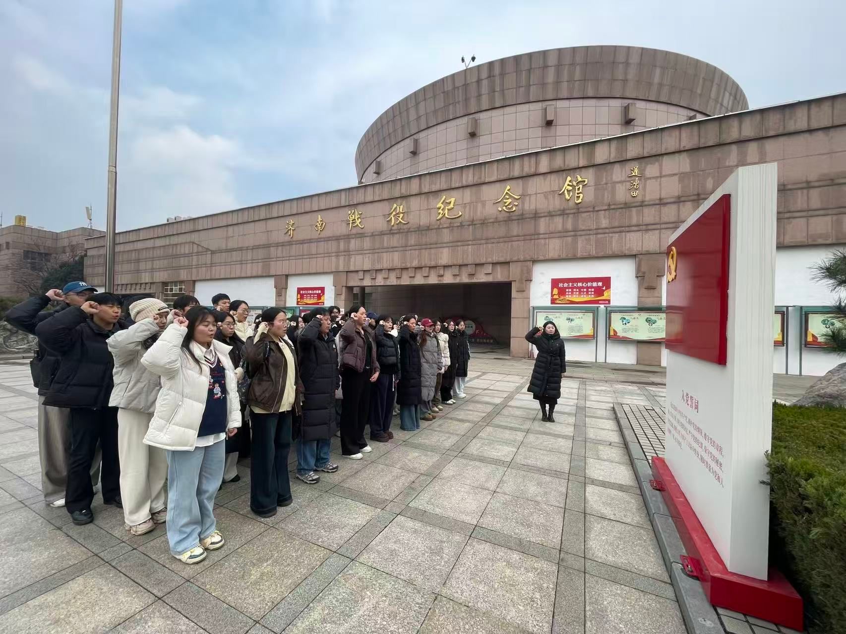 为全面领会党的二十大和二十届历次全会精神,根据学校党员发展工作要求,教育与心理科学学院坚持和完善入党宣誓制度,认真落实短期集中培训和实践锻炼,不断提高新发展学生党员思想政治觉悟,让新党员从入党开始就接受严格的党内生活锻炼。12月23日,学院组织全体2025年下半年新发展学生党员赴济南战役纪念馆开展入党宣誓和实践教育活动。在济南战役纪念馆,全体人员在讲解员引导下,参观了“战前形势”“战役实施”“胜利决战”等主题展区,通过历史照片、革命文物及影像资料,系统了解了济南战役全过程,深切感悟到革命先辈舍生忘死的崇高信仰与奋斗精神。济南战役全景画展区的沉浸式场景,进一步强化了党员们传承红色基因、赓续奋斗血脉的信念。