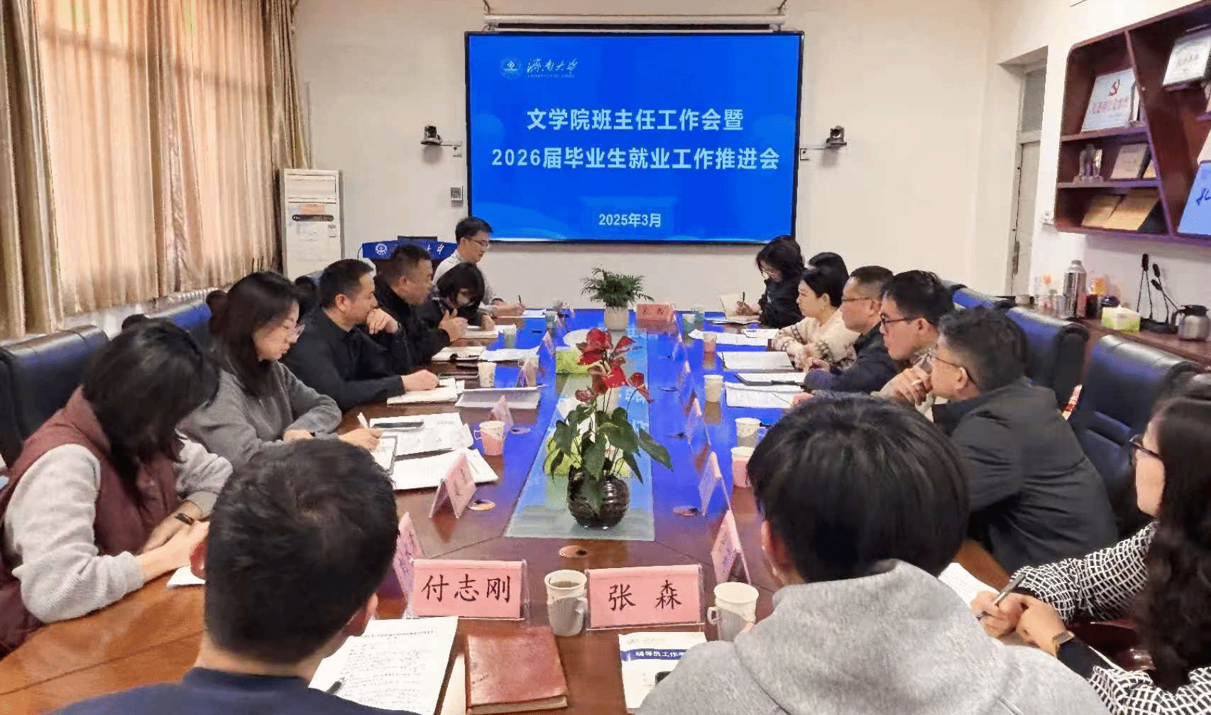 为进一步落实立德树人根本任务、强化班主任队伍建设、统筹推进毕业生就业工作,1月20日,文学院于3教411教室召开班主任工作会暨2026届毕业生就业工作推进会。学校党委保卫部、安全管理处部(处)长李荣光,学院党委书记朱海龙,学院党委副书记、副院长潘颖,以及学院全体班主任、辅导员参加会议。