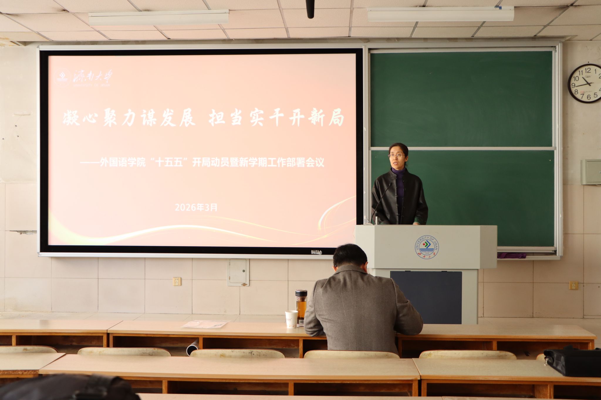 3月7日,外国语学院在第二教学楼203教室召开“十五五”开局动员暨新学期工作部署会,学院全体教职工参会。学校特聘教授、博士生导师、国家哲学社会科学基金评审委员刘建军应邀出席。