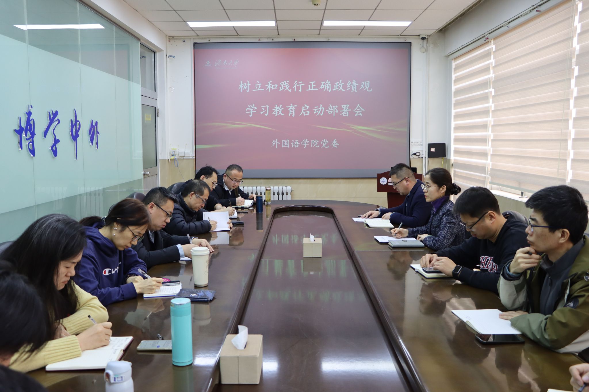 3月13日,外国语学院党委召开党委扩大会议,专题部署启动树立和践行正确政绩观学习教育工作。学院领导班子成员、各党支部书记、系主任及组织员参加会议,会议由学院党委书记郭英主持。