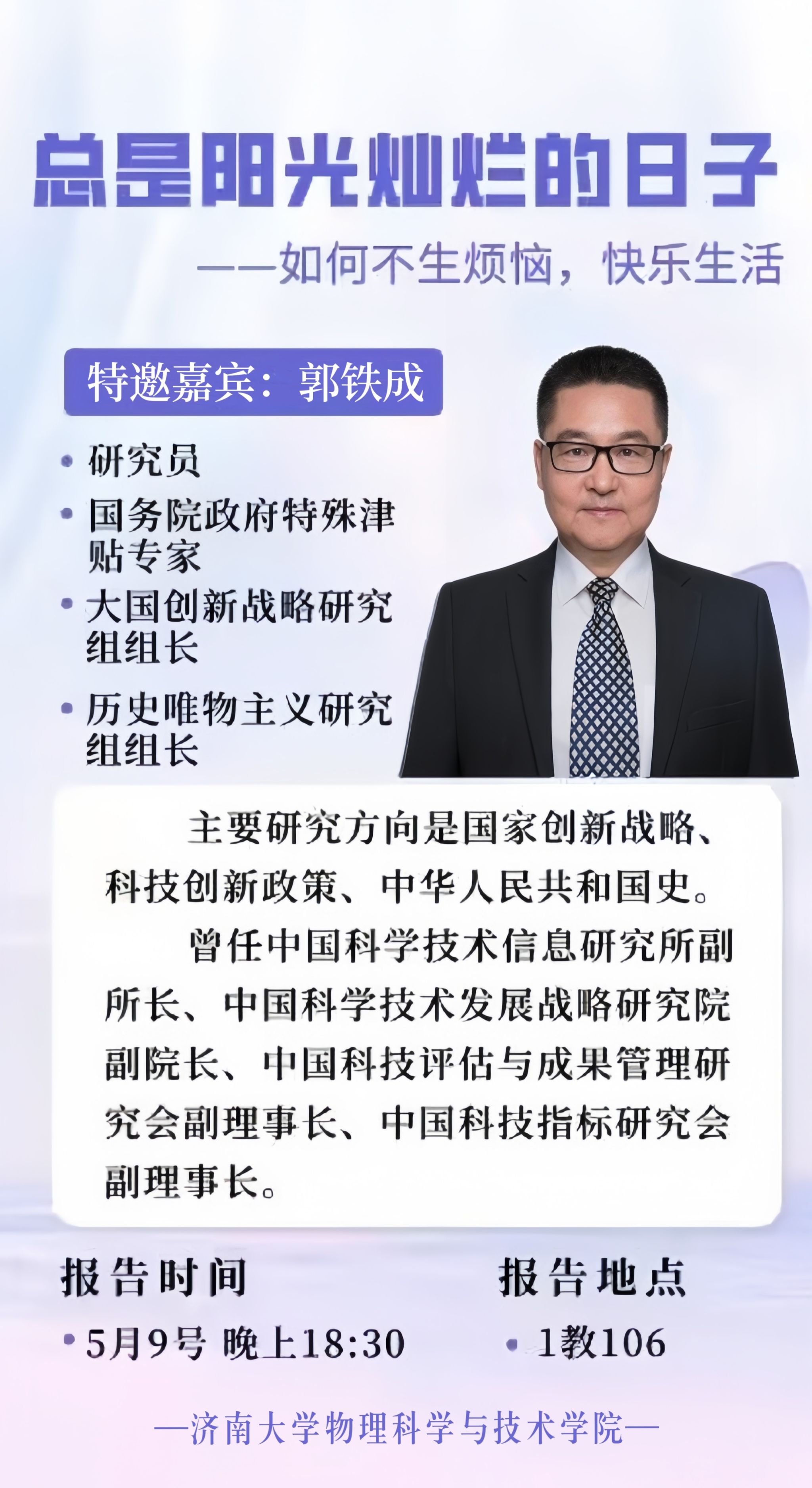 学术报告:总是阳光灿烂的日子——如何不生烦恼,快乐生活