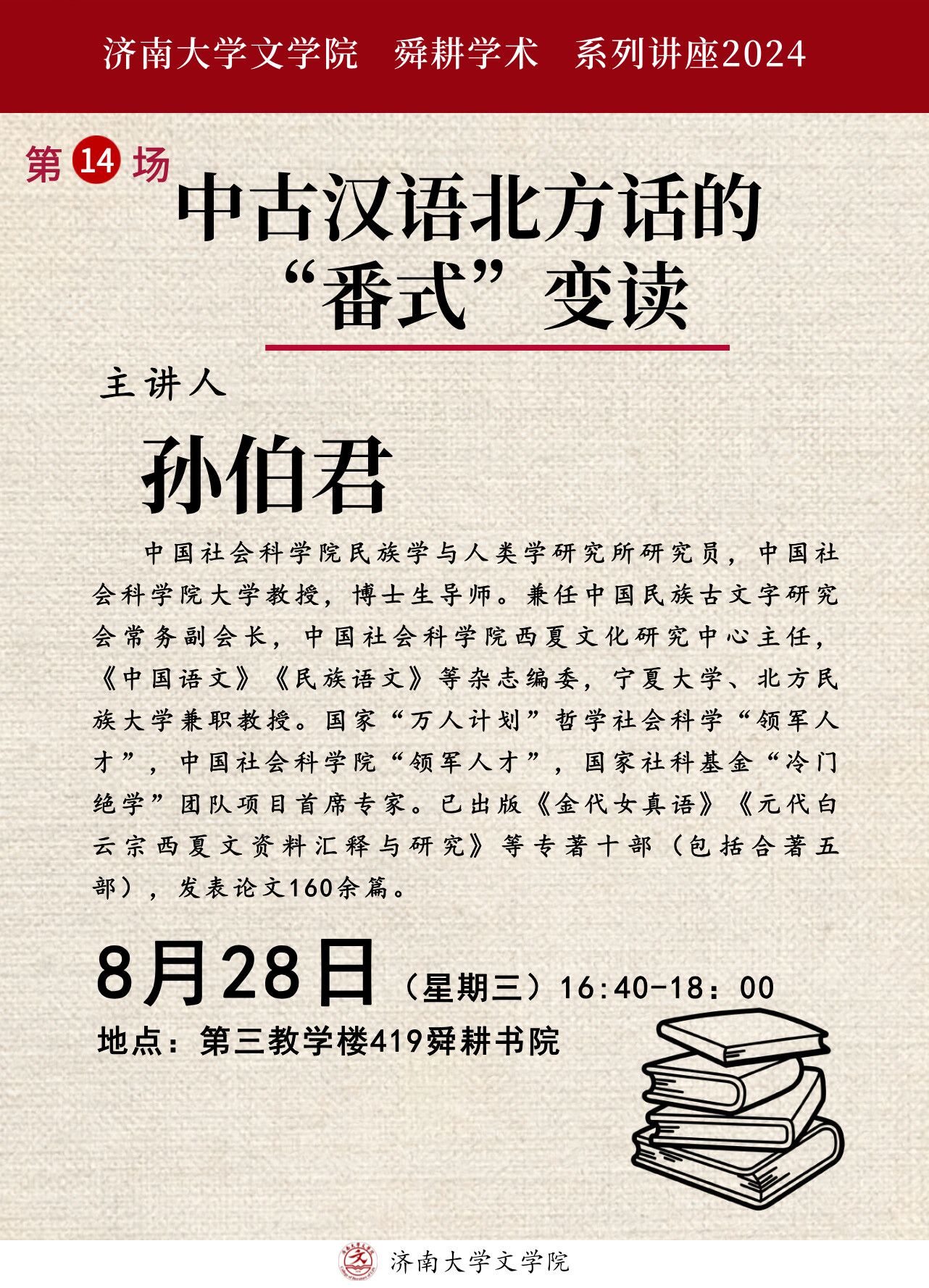 文学院舜耕学术系列讲座第14场——“中古汉语北方话的‘番式’变读”