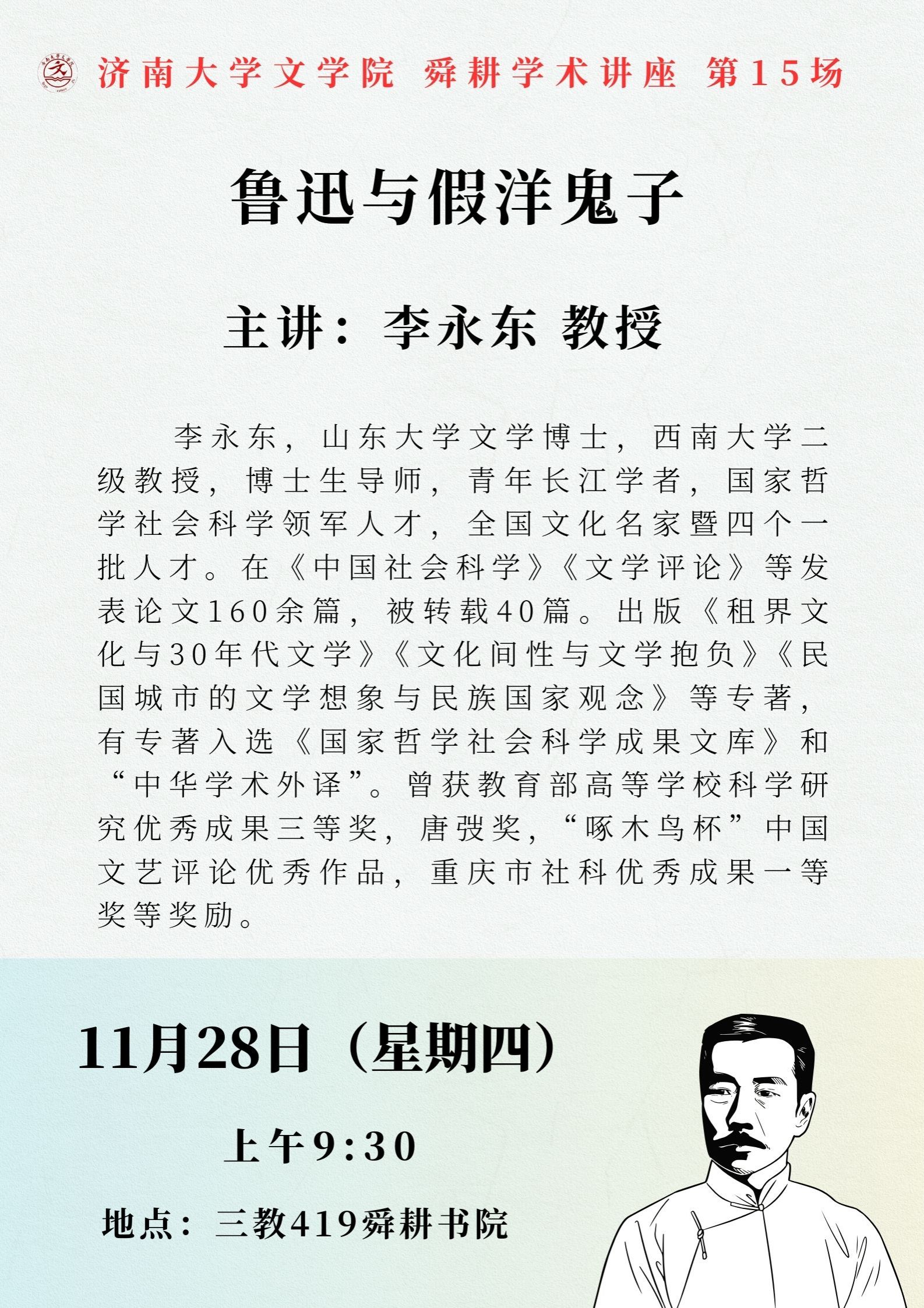 学术海报:文学院舜耕学术讲座——鲁迅与假洋鬼子
