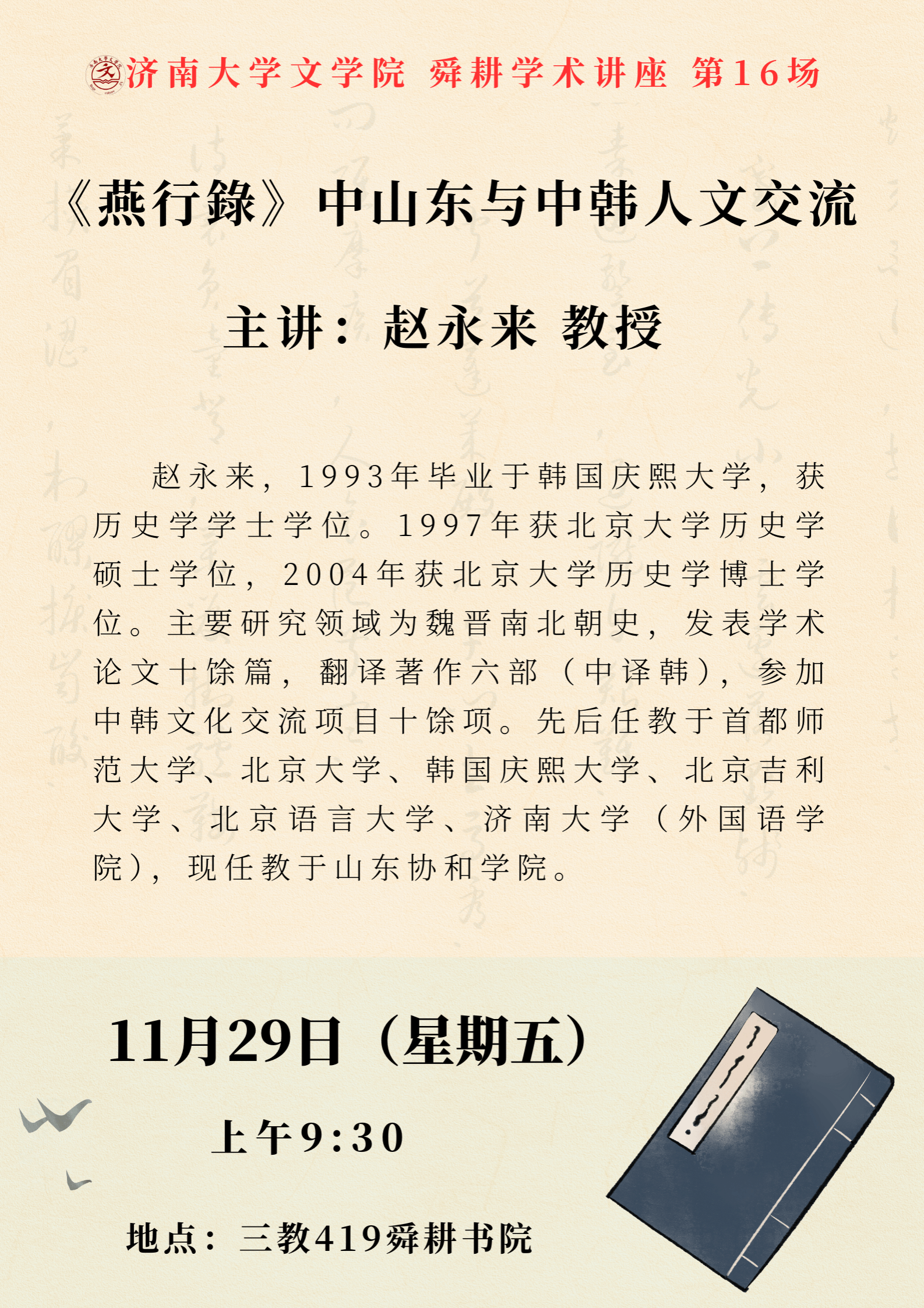 学术海报:文学院舜耕学术系列讲座——《燕行錄》中山东与中韩人文交流