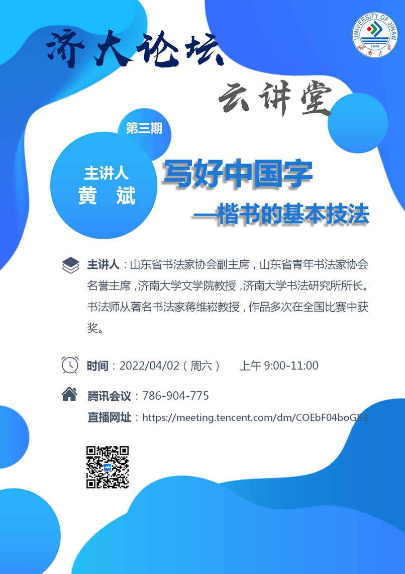 济大论坛“云讲堂”第三期:写好中国字——楷书的基本技法