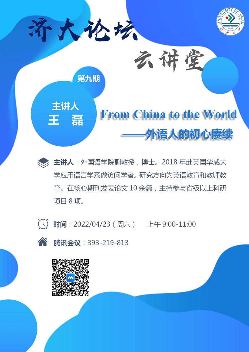 济大论坛“云讲堂”第九期:From China to the World ——外语人的初心赓续