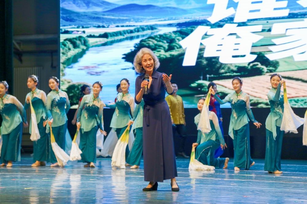 在教学指导环节,王世慧教授对多位同学的演唱进行了点评与指导。她强调演唱时要注重情感表达的层次感,如徐亚萍同学演绎的《绣荷包》需展现少女的忐忑与思念;刘乐同学演唱《再唱沂蒙山》时,她从气息控制到舞台姿态层层拆解,启发其艺术自信;谌依妍同学诠释《绣荷包的俏妹子》时,她提出“里大外小”的声腔美学;王嘉成同学演绎山西民歌《大红公鸡毛腿腿》时,她通过诙谐肢体语言示范,引导学生把握民歌叙事精髓;王丽同学演唱《梦梦》时,她强调艺术歌曲的抒情性与技巧融合。在经典山东民歌演唱环节,来自山东艺术学院、济南市歌舞剧院、开云kaiyun官网音乐学院的师生们用真挚情感和精湛技艺展示了山东民歌的独特魅力。最后,全体参演人员以一曲《谁不说俺家乡好》将现场气氛推向高潮。此外,王世慧教授还将其撰写的《山东民歌与演唱》一书赠予开云kaiyun官网。由音乐学院党委书记孙翔玲与王世慧教授共同完成赠书仪式。