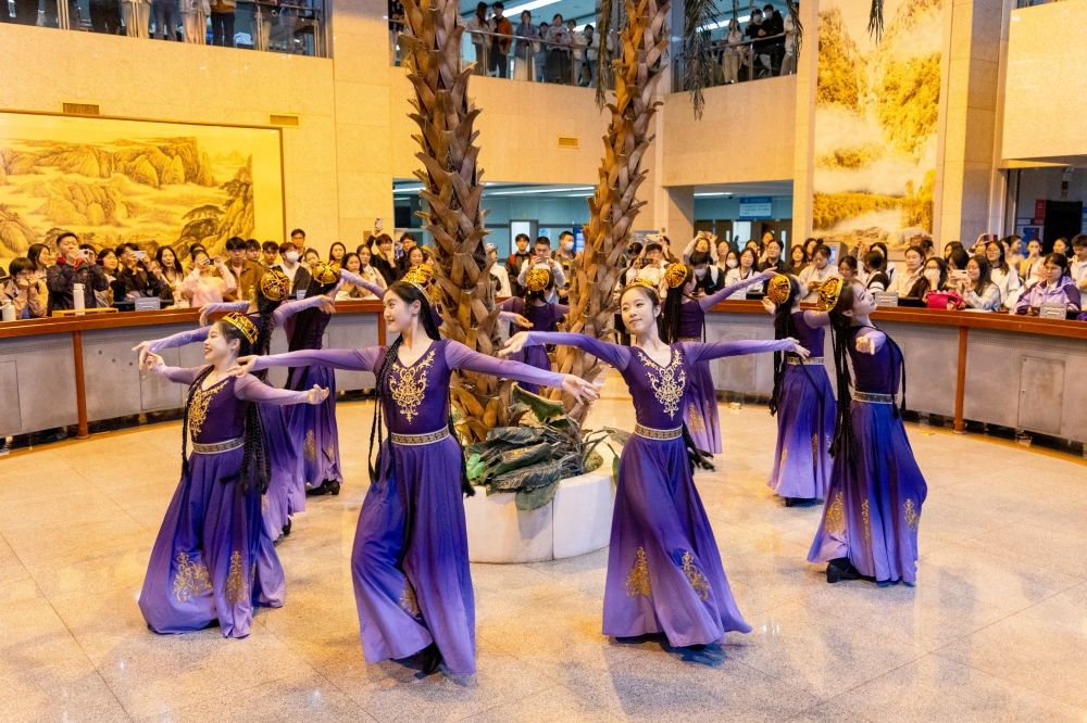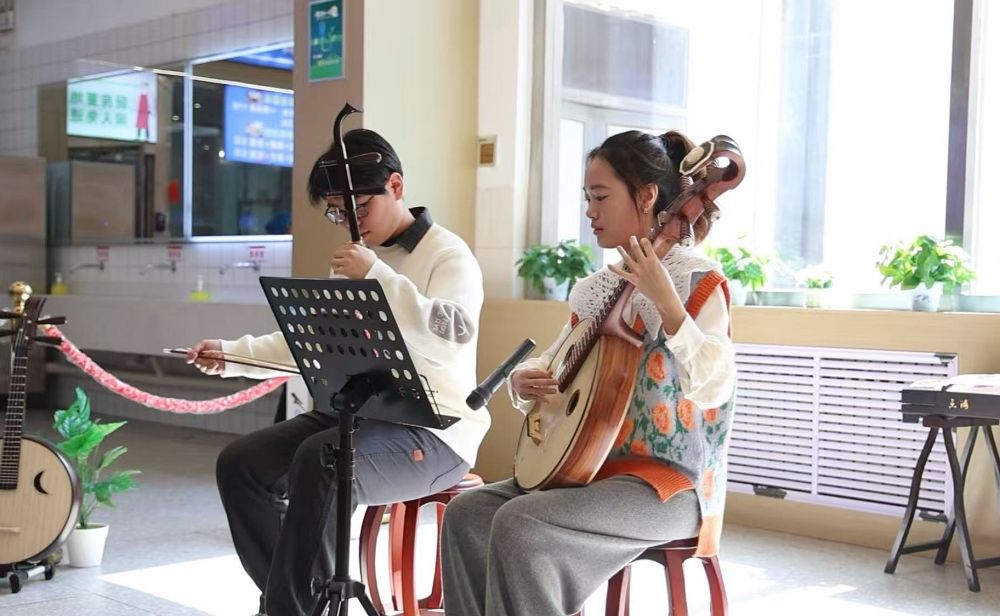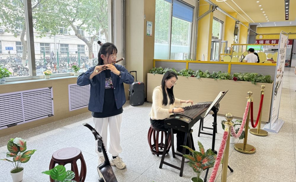 每周二、周五12:10-13:00,三食堂传来阵阵悠扬的民乐之声,一场场小型民乐秀精彩呈现。中阮弹拨《金蛇狂舞》《满江红》;唢呐吹响《九儿》《敢问路在何方》;二胡演绎《赛马》《贝加尔湖畔》,还有竹笛版《铁血丹心》,古筝版《美丽的神话》……从古典到现代,从婉转到豪迈,十八般乐器,诠释多种风格。五四前夕还特别创排了《唱支山歌给党听》《我和我的祖国》《红领巾列车奔向北京》等曲目,以传统乐器奏响红色旋律。通过自己的专业让更多人领略到传统民族乐器的魅力,为传承弘扬中华优秀传统文化、增强民族自豪感与文化自信略尽绵薄之力,参演的同学们倍感自豪。