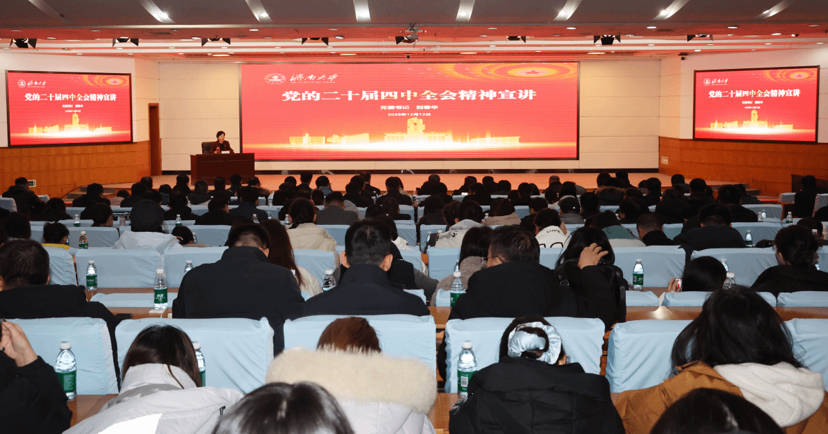 12月12日,山东高校学习贯彻党的二十届四中全会精神宣讲团成员、学校党委书记刘春华为学校干部师生作党的二十届四中全会精神宣讲报告。学校领导、全体中层干部、各学院学办主任、团委书记以及师生代表现场参加报告会,机关党委青年理论学习小组全体成员线上同步观看报告会。