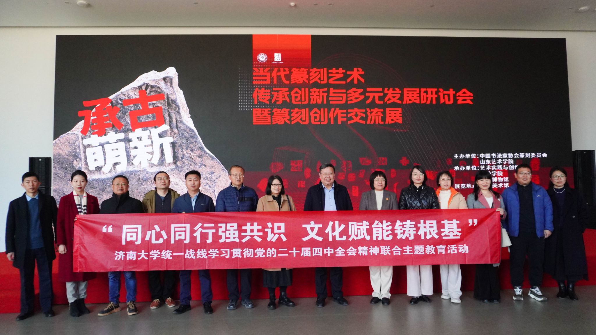 为深入学习贯彻党的二十届四中全会精神,凝聚统一战线思想共识,以优秀传统文化赋能学校高质量发展,11月21日上午,学校党委统战部联合美术与设计学院,组织各民主党派、统战团体代表赴山东艺术学院长清校区开展“同心同行强共识 文化赋能铸根基”学习贯彻党的二十届四中全会精神联合主题教育活动。山东艺术学院党委书记徐梅,党委委员、副院长苏茂兴,学校党委常委、统战部部长徐庆国,美术与设计学院党委书记陈春锋出席,两校各民主党派、统战团体代表,相关部门负责人参加。